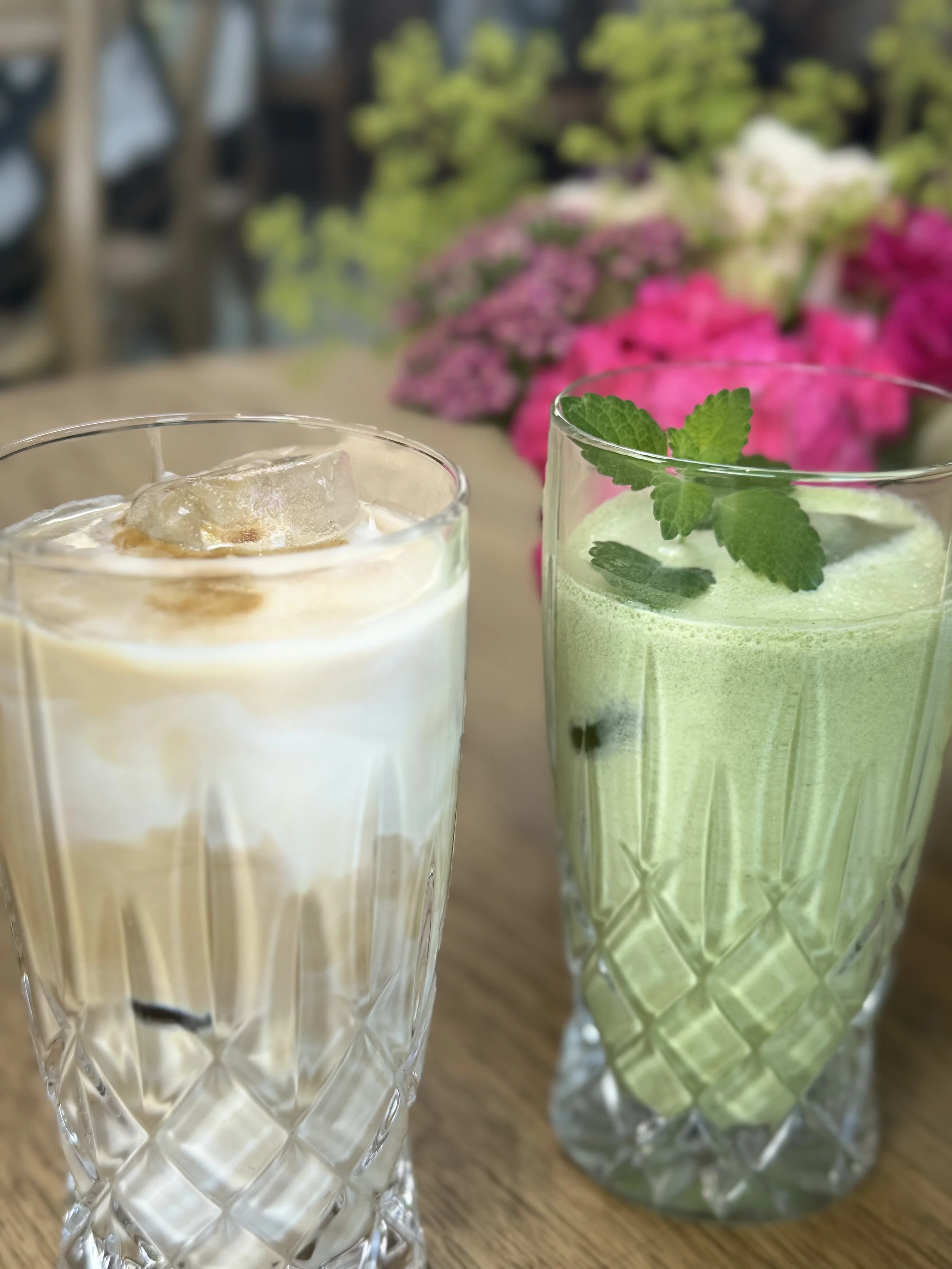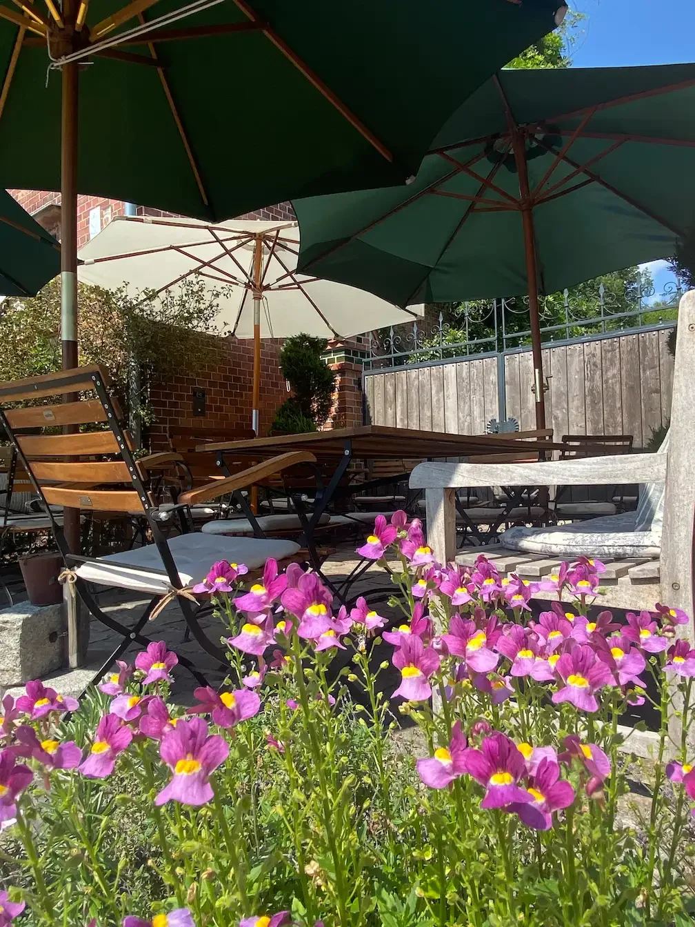 Das Backsteingebäude, in dem sich das Café befindet, bringt reichlich Geschichte mit. Es bildet den Rahmen für ein besonderes Ambiente, das durch Farben, alte Möbel und allerhand Blumen besticht.